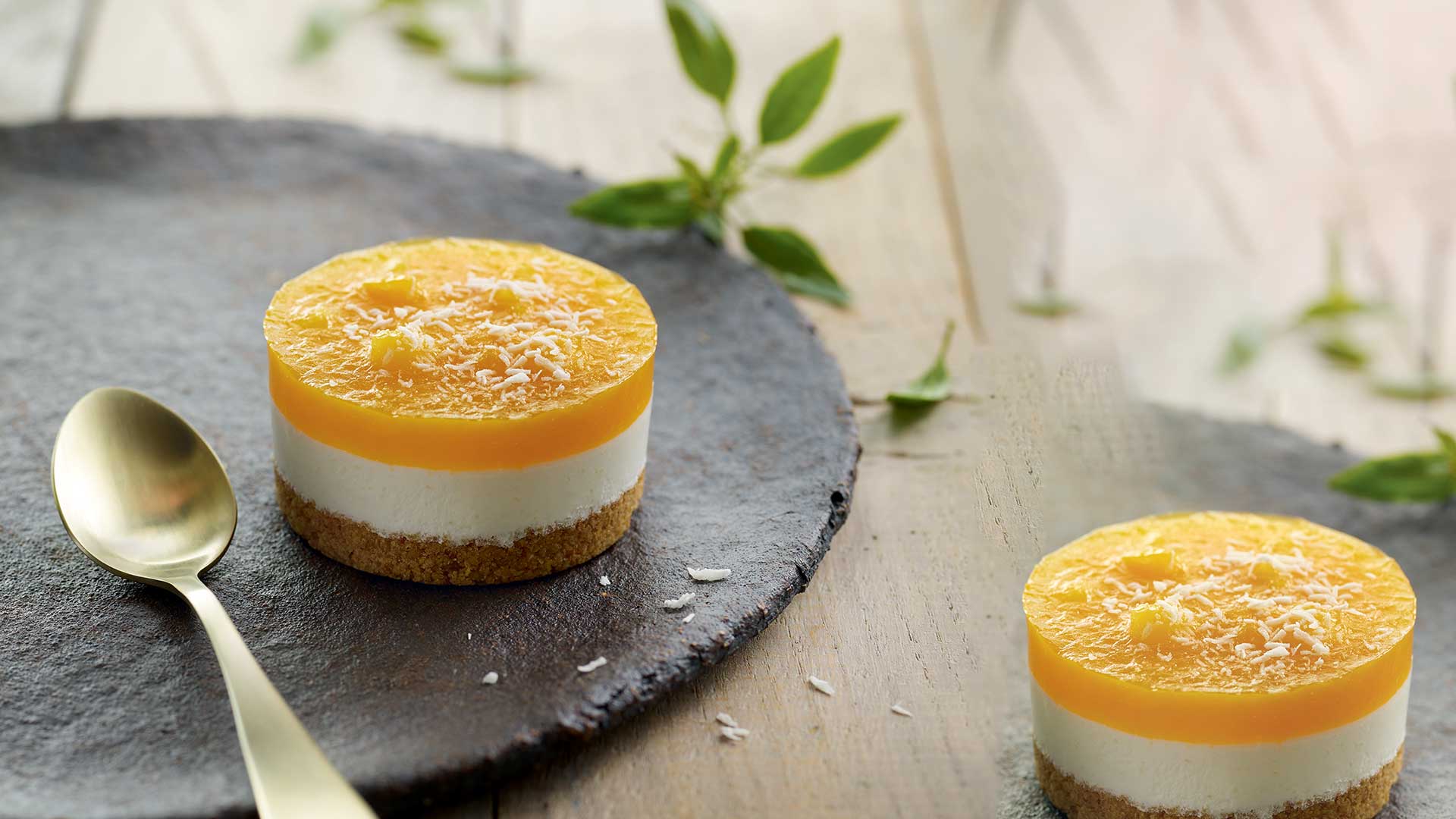 Het Zandtaart Mango Kokos is een fris en trendy dessert, ideaal voor uw zomermenu. Bovendien heeft het, speciaal voor traditionele restaurants, een stevige basis die niet snel afbrokkelt, wat het dresseren van de borden makkelijker maakt.